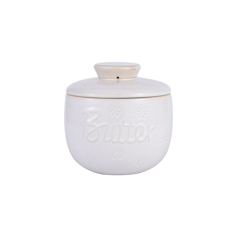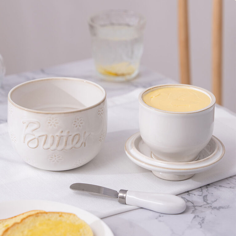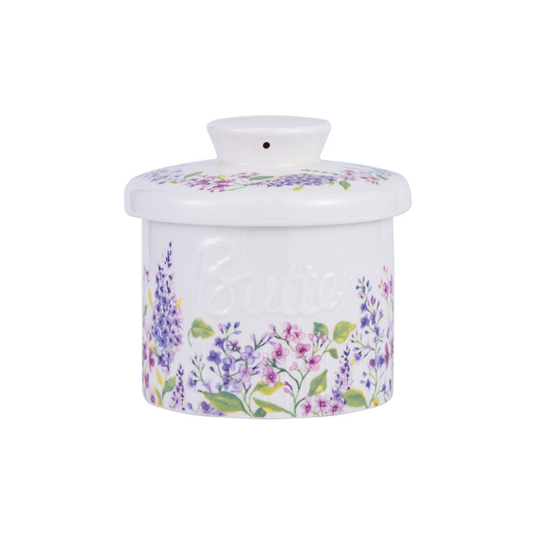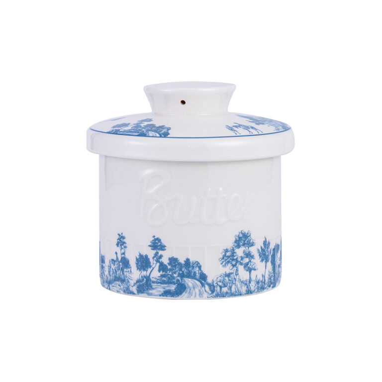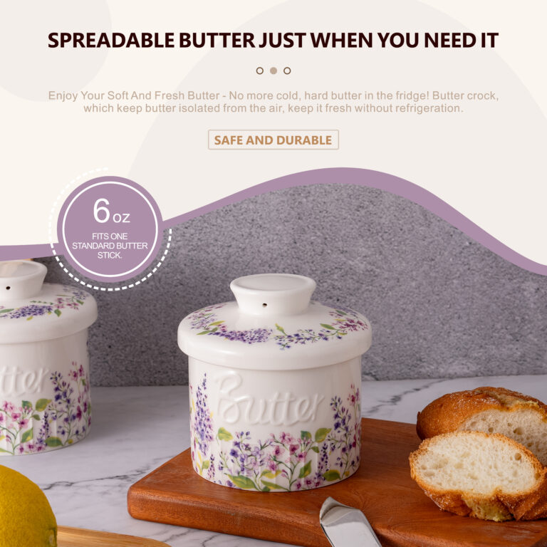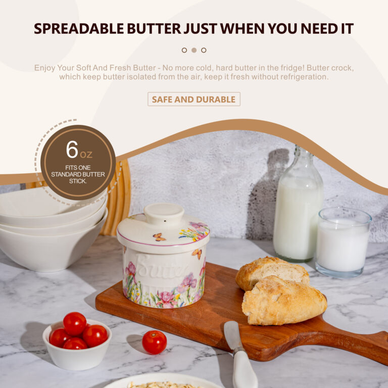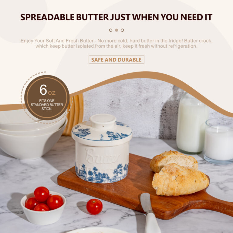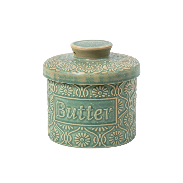 French Butter Crock Porcelain Keeper – Airtight Water-Seal 6.7 oz Countertop Soft Butter Dish, Clover Décor & Housewarming Gift - Mixed vintage