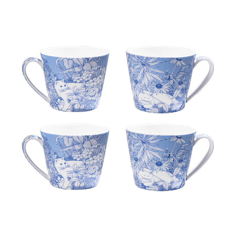 Fine Bone-China Tea Cup & Saucer Set – 160 ml, 24K Gold Handle, -Blue Luxe