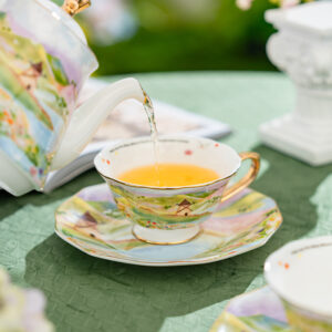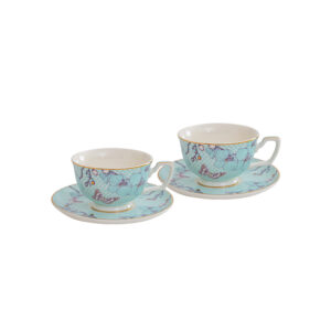 2-Cup & 2-Saucer Gift Set – 24 K Gold Rim and Colorful world