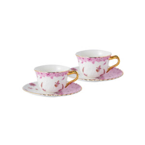 220 ml Bone China Tea Cup & Saucer Set of 2- 3 themed designs-Blooming Ballet