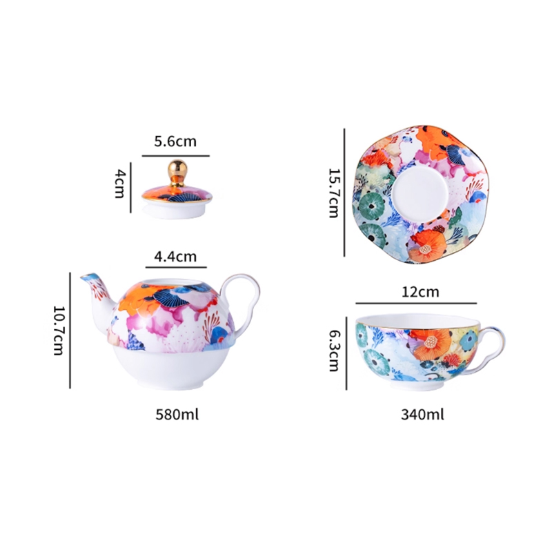 Product Name 550 ml Bone China Teapot & 10 oz Cup Tea for one Gift Set-Secret coral land
