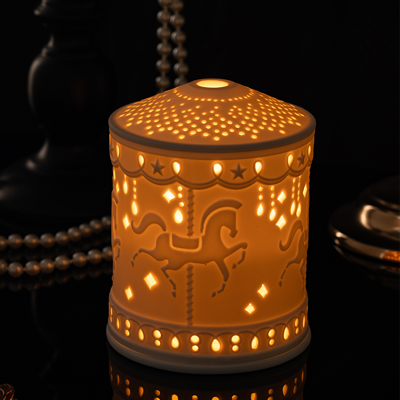Thin Ceramic Candle Lantern – Hollow Horse Pattern, Aromatherapy & Christmas Décor