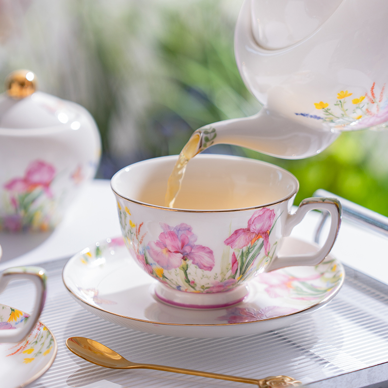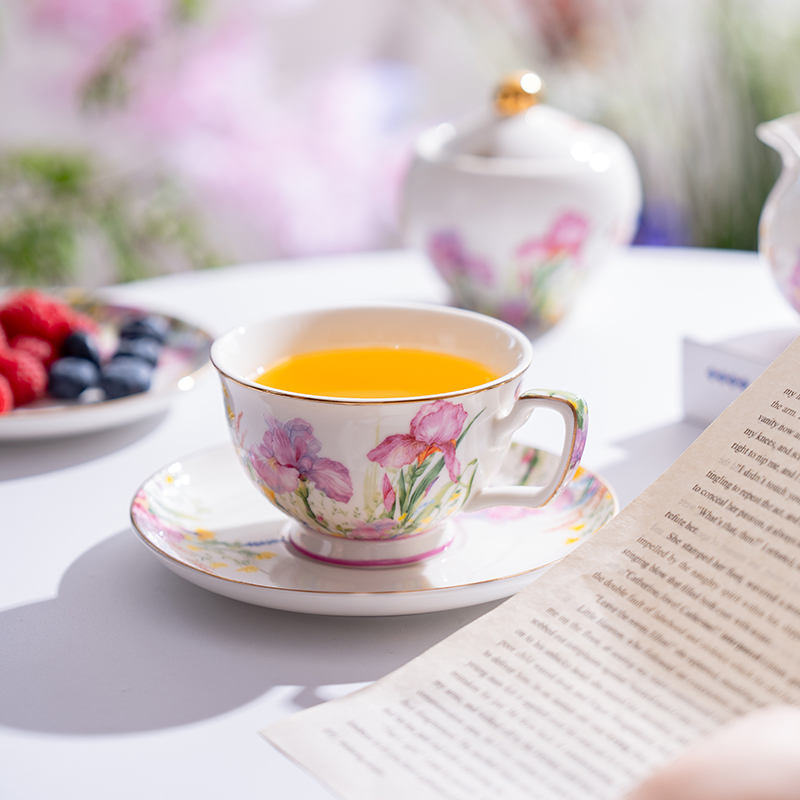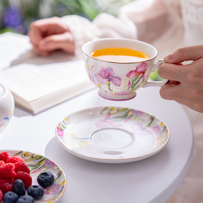 Detail Description Original Spanish-studio “SWEET SPRING” watercolor, high temperature fired decal with 24K gold rim;fine-porcelain for thin, lightweight, chip-resistant elegance. FSC-certified luxury packaging—ready-to-gift straight out of carton.
