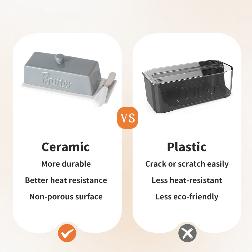 | Product Name | Butter Dish with Lid and Knife: Ceramic Butter Dish with Lid for Countertop, 8 Inch Butter Holder with Knob Handle, Durable Butter Keeper |