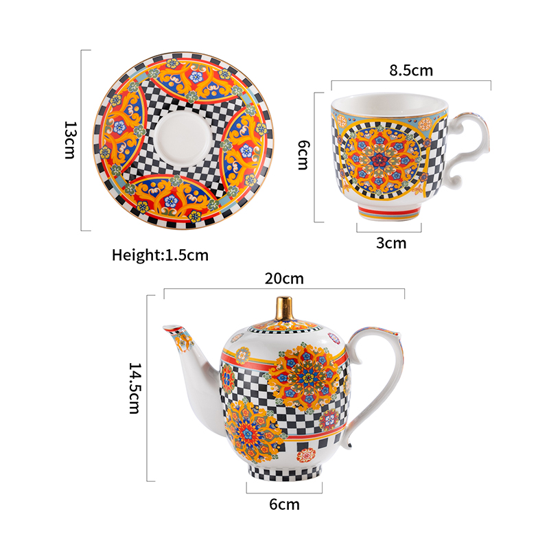 | Detail Description | Reinforced porcelain with vibrant decal patterns + hand-painted 24 K gold edges; chip-resistant, lead- & cadmium-free. Elegant gift box ready for giving—perfect for coffee lovers and formal entertaining. |