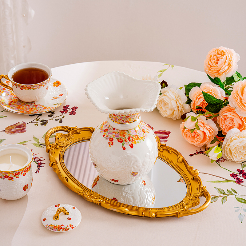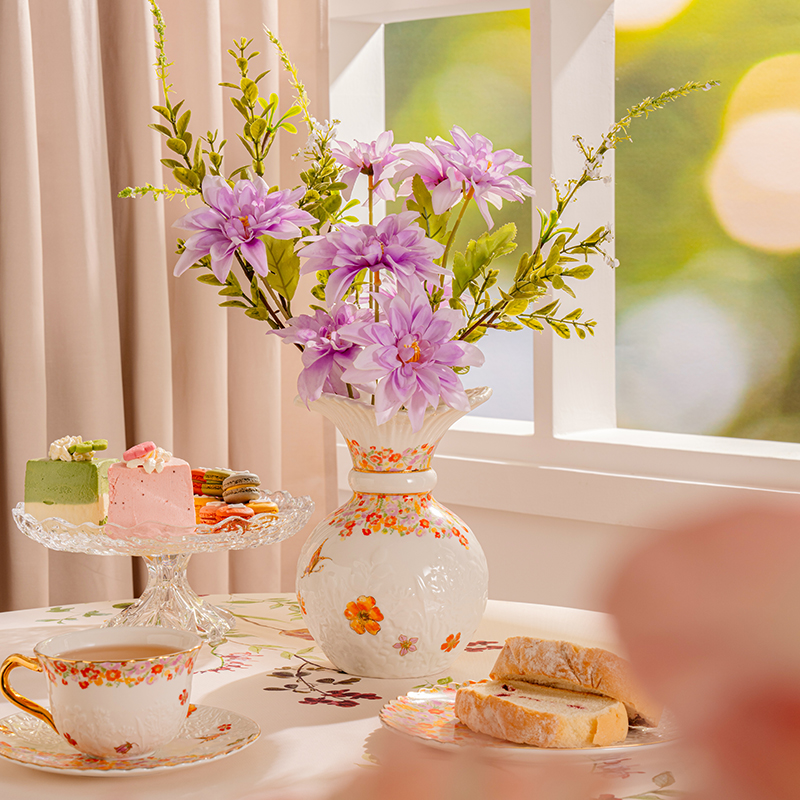 | Detail Description | Fine porcelain vase in three themed designs (Colorful World, Blooming Season, Dancing Butterfly) featuring vibrant floral decals and hand-painted 24 K gold edges; unique silhouette suits modern or classic interiors; arrives ready-to-gift in ribboned box with carry tote. |